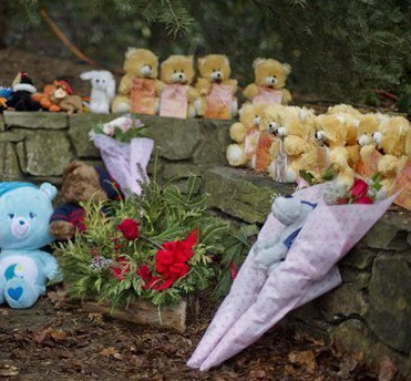 Newtown Calling 19 Wednesday Dec 2012 Original size at 371 × 344 ≈ Leave a comment Sidewalk memorial with 26 stuffed animals representing 26 shooting victims, Newtown, CT, December 16, 2012. (David Goldman/AP).
