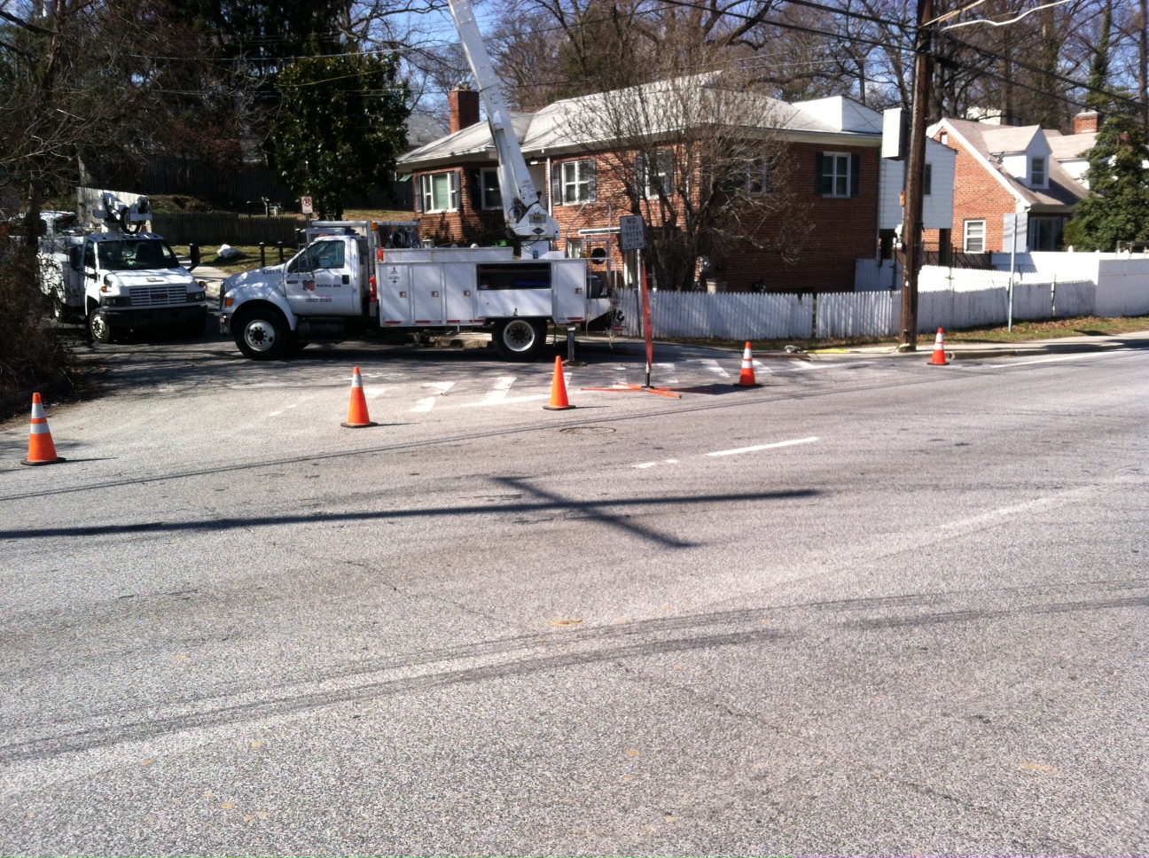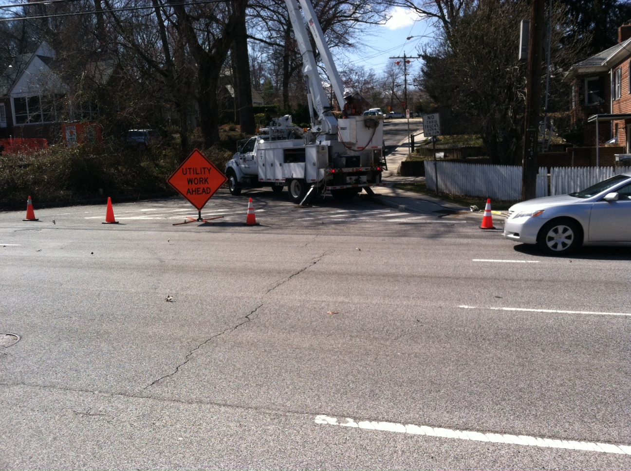 Utility work closing off Lorain Avenue (cones included, Silver Spring, MD, March 14, 2013 (2:37 pm). (Donald Earl Collins).