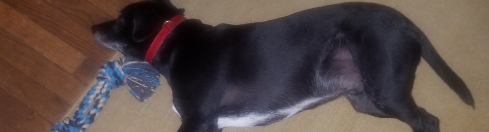Jacobi in a dead-dog’s rug pose, February 13, 2022. (Donald Earl Collins).