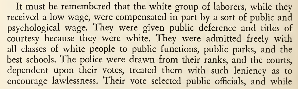 For a refresher, this was what Du Bois actually wrote about Whiteness and wages in Black Reconstruction: