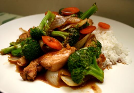 Chicken and broccoli stir-fry over rice, February 2013. (http://slimimzsolutions.com).